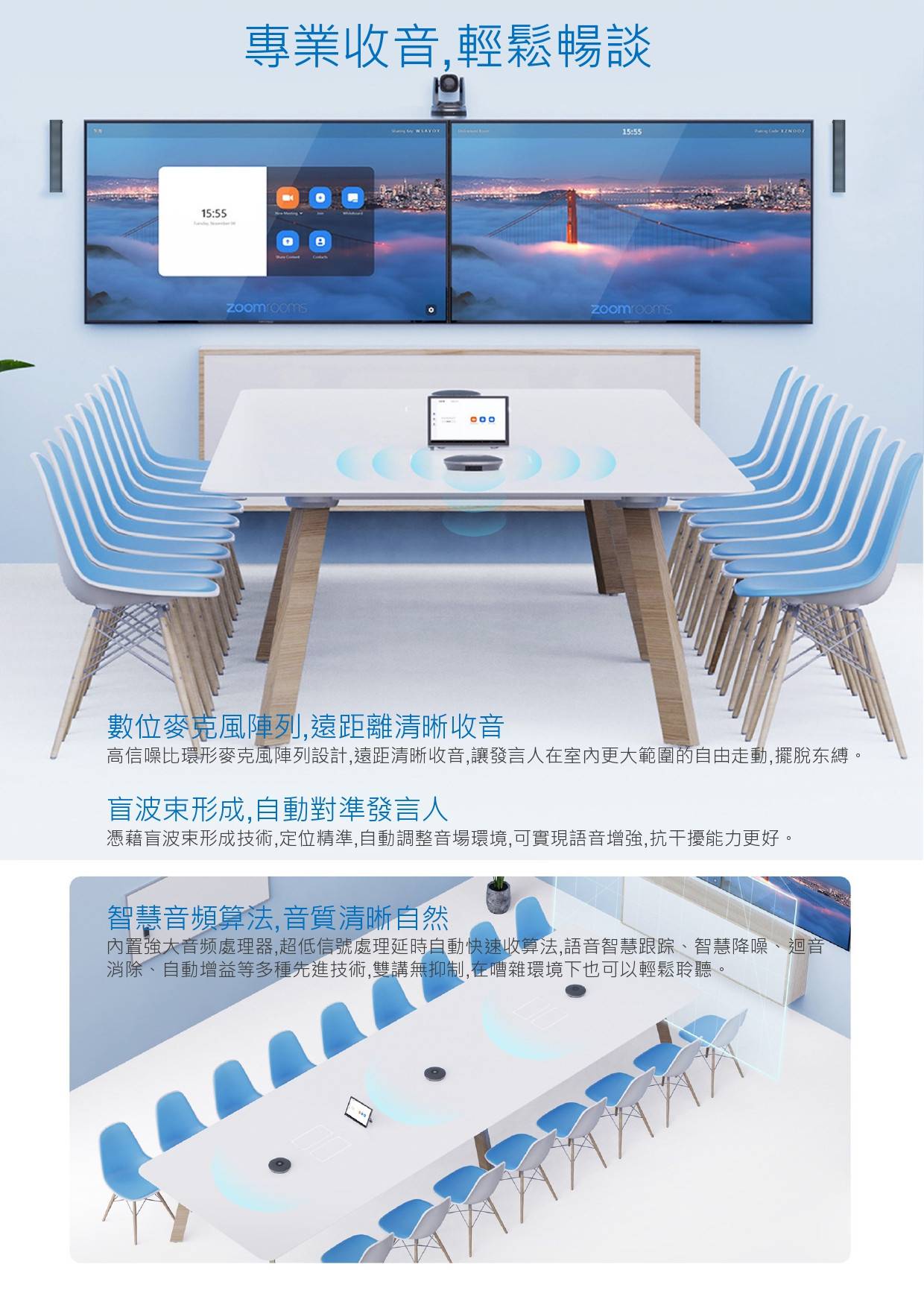 ●數位麥克風陣列,遠距離清晰收音