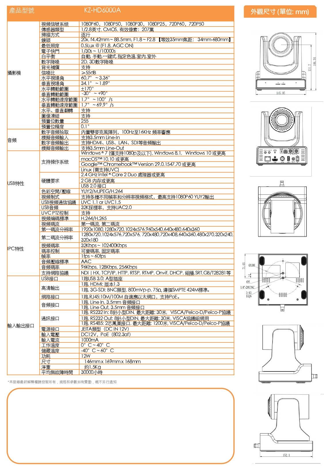 KONZESYS KZ-HD6000A AI自動跟蹤攝影機