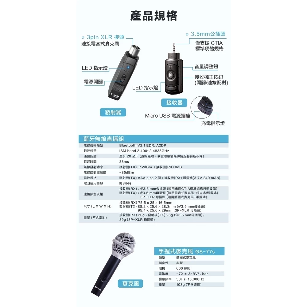 品名 無線直播麥克風套組BTL-300D_手握式(手機/平板隨接即用)