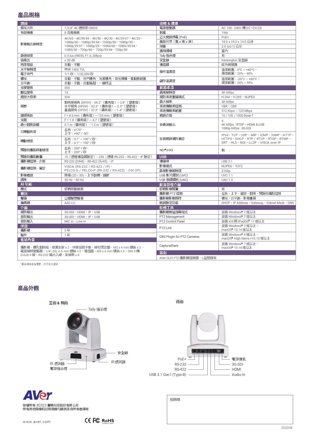 AVer PTZ330UV2 PTZ 視訊攝影機