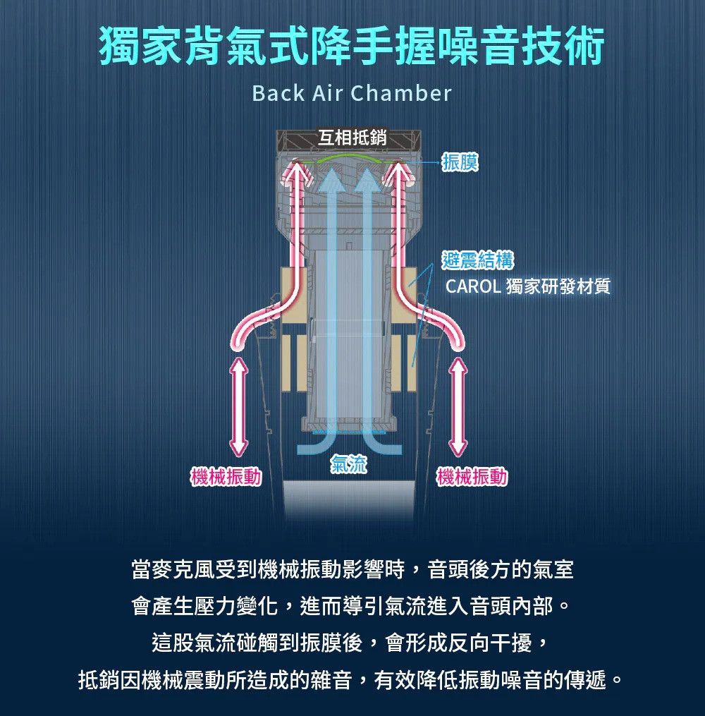 CAROL主動抗震技術:防震降噪音頭,適用錄音、舞台收音,聲音清晰圓潤。