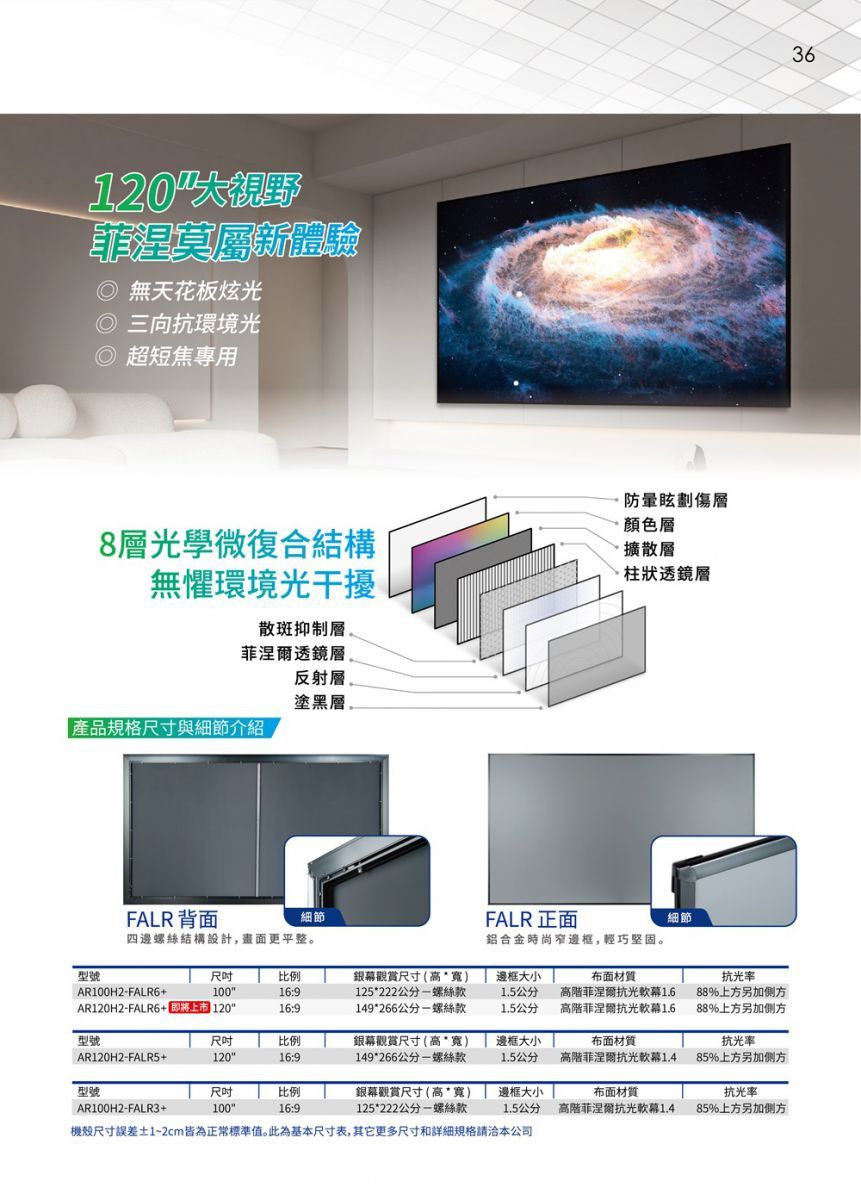 Elite Screens 億立銀幕 FALR6超短焦菲涅爾高亮抗光軟幕