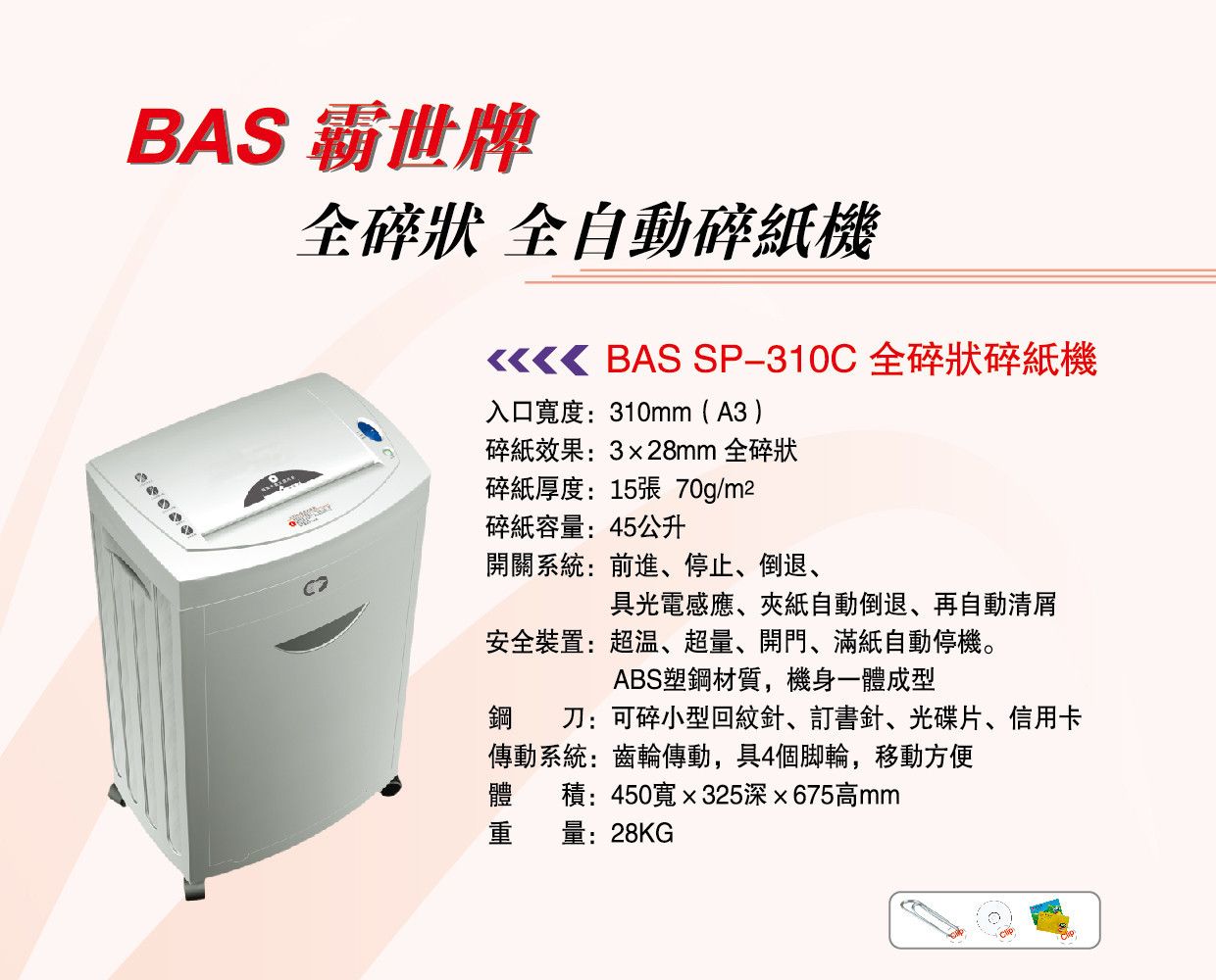 BAS SP-310C A3碎紙機,A3碎紙機,辦公室碎紙機,電動碎紙機, 低噪音碎紙機,大容量碎紙機,防卡紙碎紙機,保密文件碎紙機,家用碎紙機, BAS SP-310C