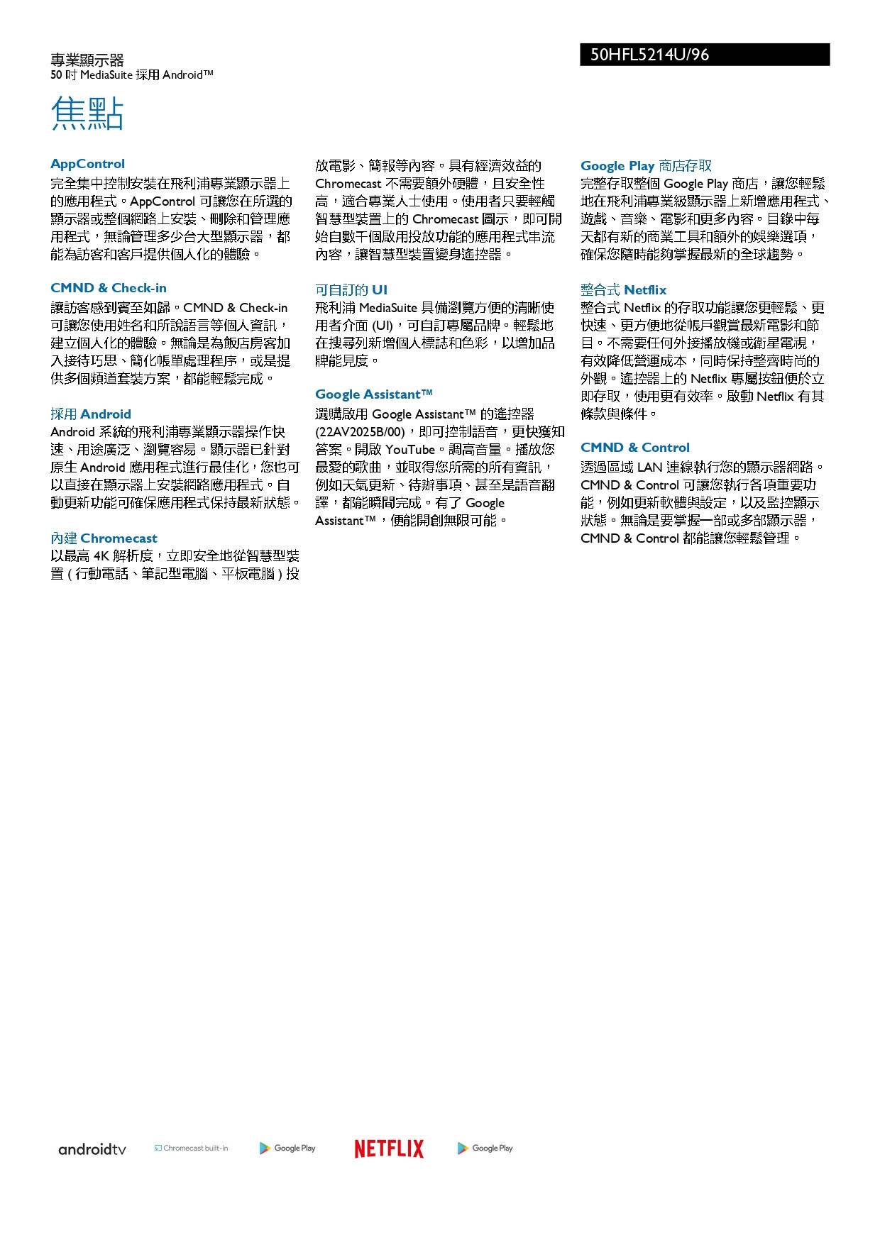 Philips 50HFL5214U 50吋4K Android 聯網液晶顯示器