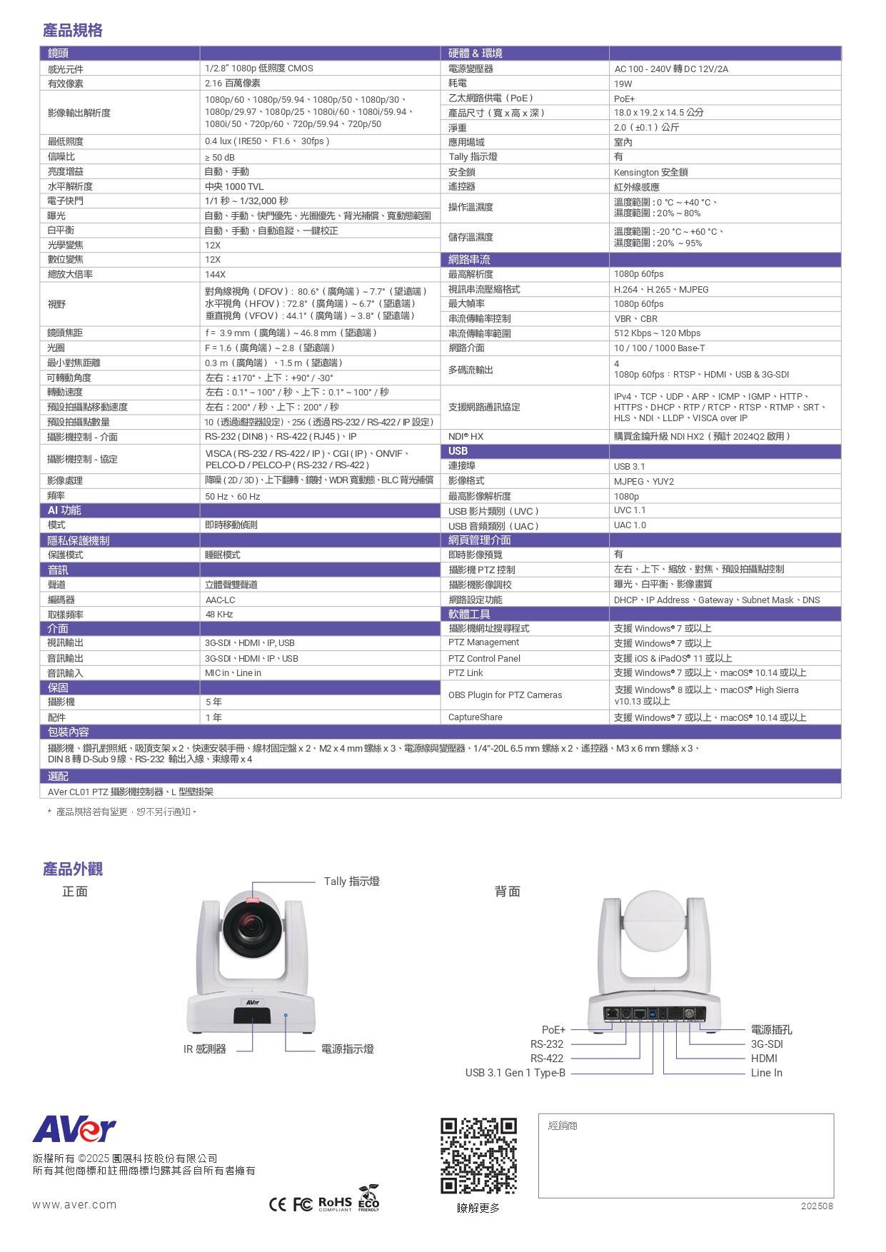 AVer 永續包裝方案採用環保回收材質,便於拆解與回收的減塑設計結合 35% 回收 PE 袋、100% 回收紙漿緩衝材與 85% 回收紙板箱;空間優化設計有效降低 30% 以上碳足跡、倉儲及運輸成本,為重視生態的用戶提供完整永續包裝解決方案。