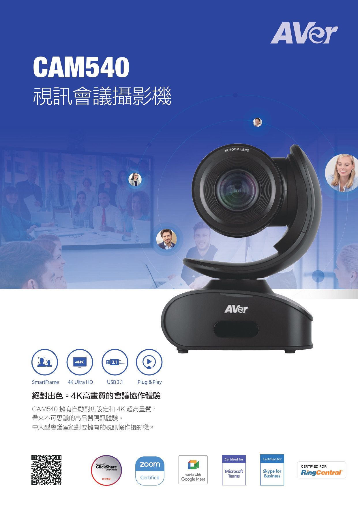 CAM540搭載16倍變焦鏡頭,擁有快速縮放與對焦能力,提供清晰可見的影像和最簡便、有效率的視訊會議。