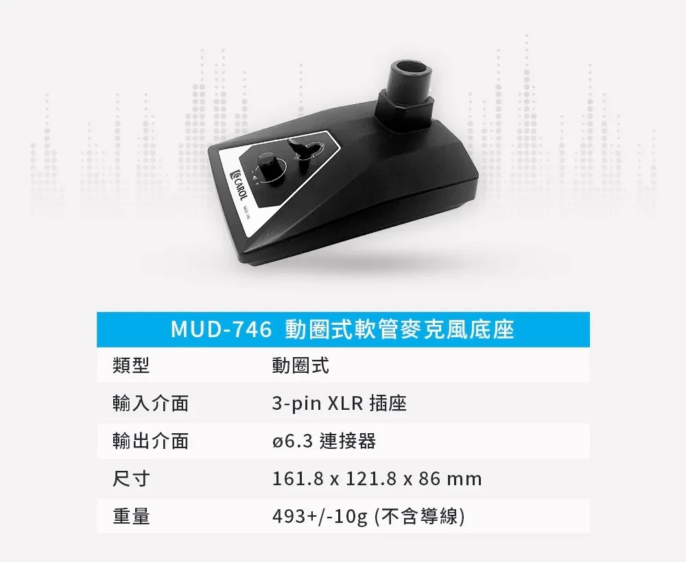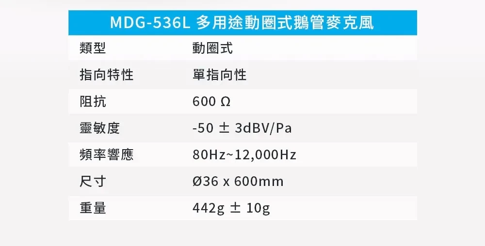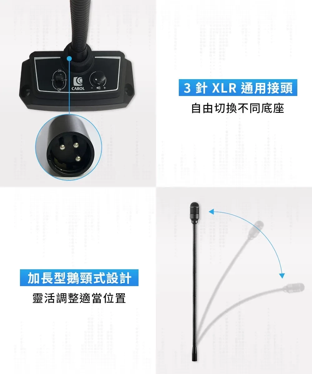 商品詳情 CAROL MDG-536L 鵝頸式麥克風 ★ 加長型鵝頸式設計可靈活調整位置 ★ 3 針 XLR 通用接頭可自由更換不同底座 ★ 頸管長達 60 公分 CAROL MDG-536L 鵝頸式麥克風 TWD $2,600 ~ 3,900 TWD $2,600 ~ 3,900