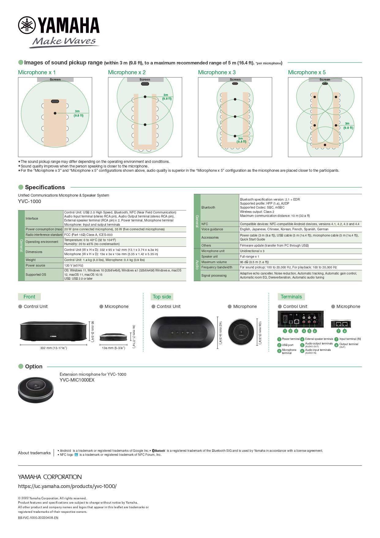 YAMAHA YVC-1000 整合的通訊麥克風和喇叭系統