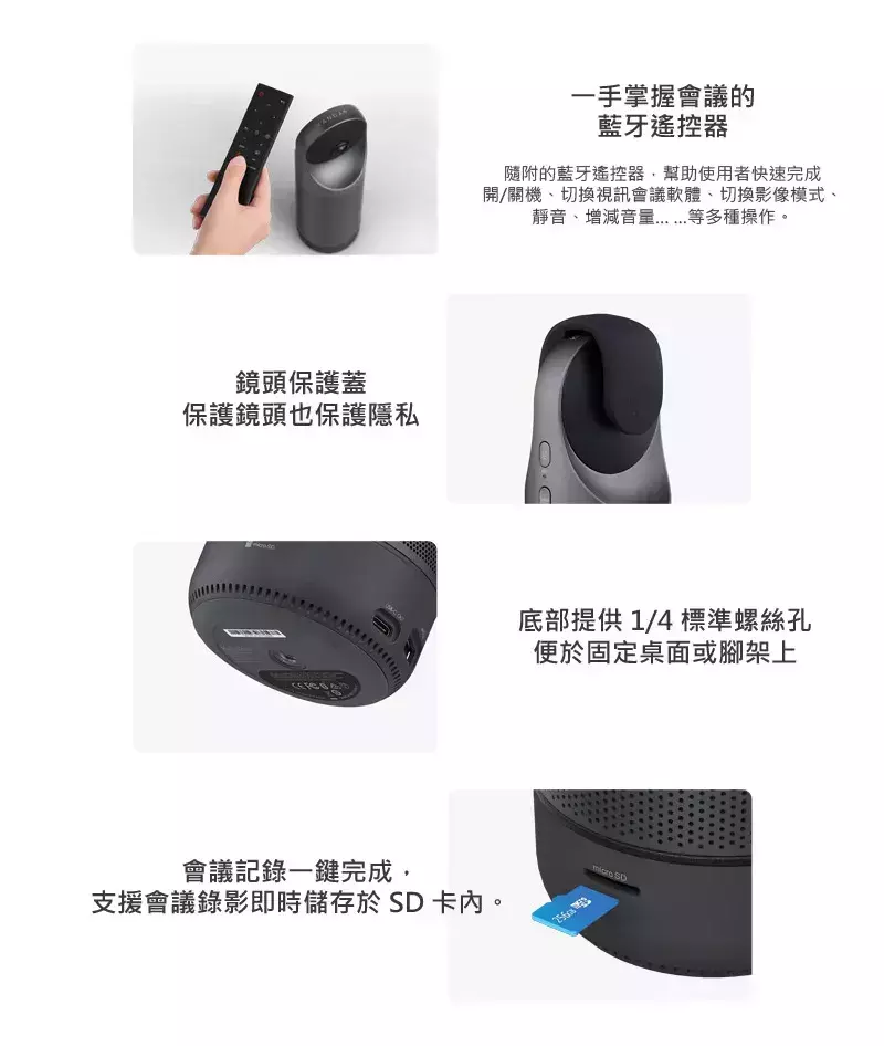 ►四合一突破極限,一體化設計更強大的360°智慧視訊會議機