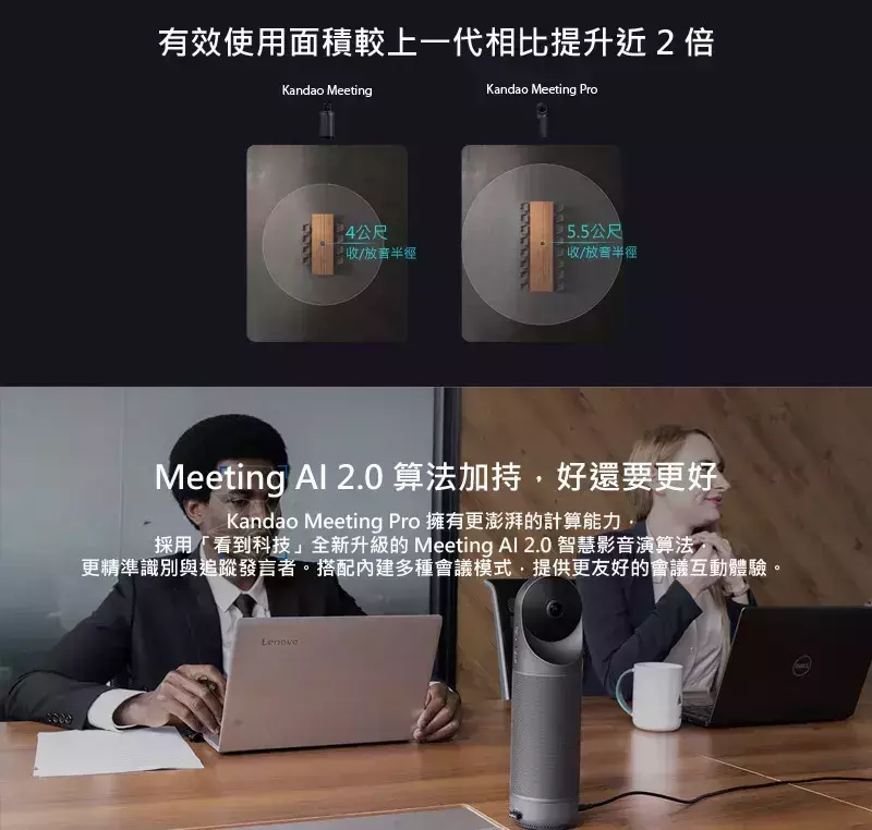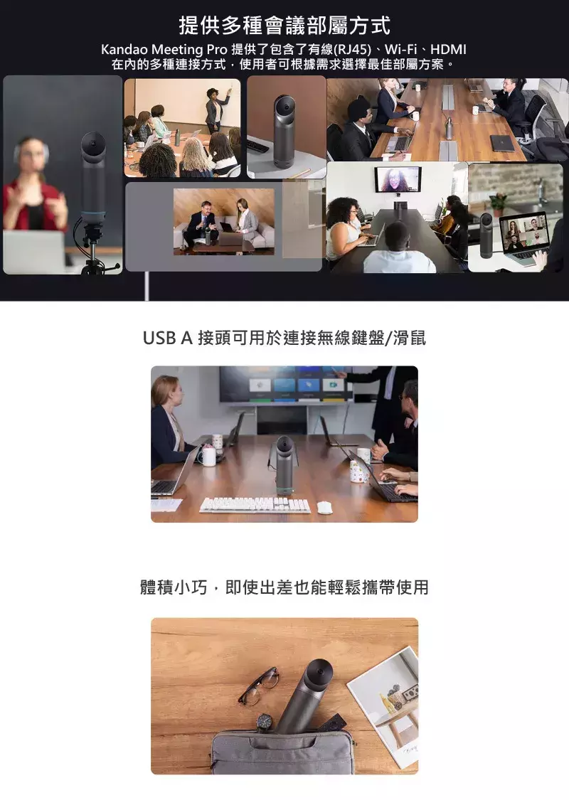 KANDAO Meeting Pro,KANDAO 全景會議機,360° 視訊會議機,全景攝影機會議,4K 視訊會議設備,AI 自動追蹤攝影機,遠距會議設備,混合辦公視訊,視訊會議攝影機 ,全向收音會議機,USB 視訊會議設備,中小型會議室設備 - Zoom 視訊設備 - Teams 視訊設備 - Google Meet 攝影機 - 全景 AI 會議機