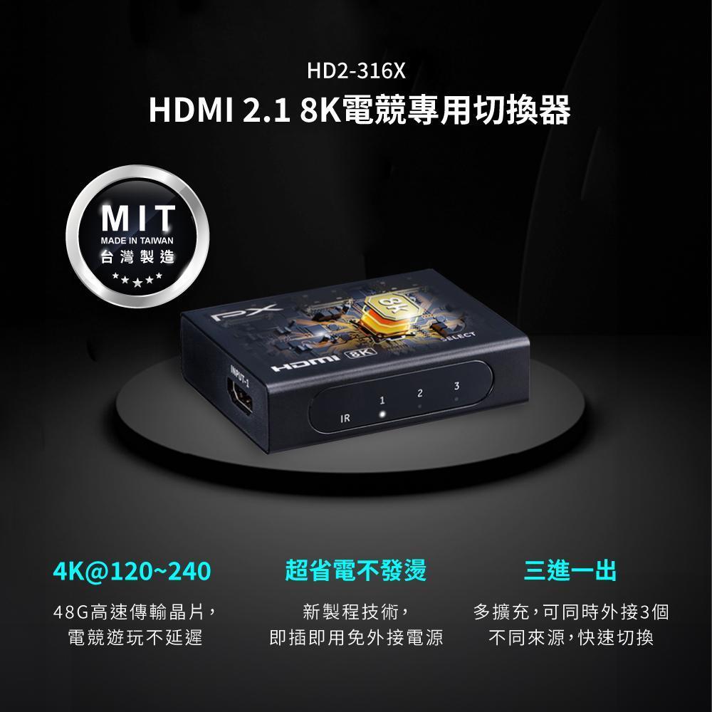 PX HD2‑316X,8K HDMI 切換器,HDMI 切換器,3進1出 HDMI,4K HDMI Switch,HDMI 分配器,4K@60Hz,HDMI 多工切換,電視 HDMI 切換,遊戲主機 HDMI,PS5 HDMI 切換器,Switch HDMI 切換器,投影機 HDMI,家庭劇院設備, 大通 HD2‑316X, 大通切換器
